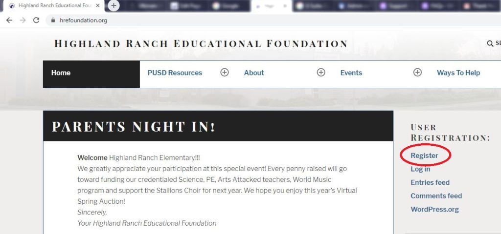 Hello and welcome to the Highland Ranch Educational Foundation’s Parent’s Night IN! Auction.